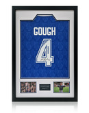 Beautifully presented Premium Frame with signed Rangers shirt from Richard Gough. This item measures approximately 690mm x 480mm. This item is accompanied with an certificate of authenticity from The Fan Cave.