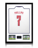 2 photo signed shirt display by Kalvin Phillips. He made his England debut on 08/09/20 when he started against rivals Wales in a 3-0 victory.