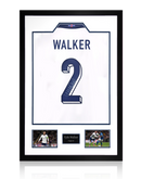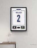 Beautifully presented Premium Frame with signed England shirt from Kyle Walker. This item was signed at an exclusive Fan Cave signing with Kyle. The frame measures approximately 690mm x 480mm. This item is accompanied with an certificate of authenticity from The Fan Cave.