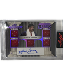 On the front of this card are pieces of game-used memorabilia of: Julius Erving.
