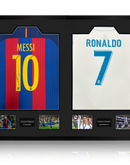 Lionel Messi & Cristiano Ronaldo Signed Barcelona & Real Madrid Shirt Ultra Premium Frame
