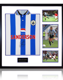 Sheffield Wednesday 98 Home Shirt Display Signed by Paolo Di Canio. These are wooden framed and contains 3 iconic photos and an etched plaque