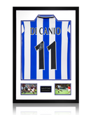 Sheffield Wednesday 98 Home Shirt Display Signed by Paolo Di Canio. These are wooden framed and contain 2 iconic photos and an etched plaque. This item was signed at an Fan Cave signing with Paolo on the 28/03/25. The frame measures approximately 850mm x 600mm. This item is accompanied with an certificate of authenticity from The Fan Cave.