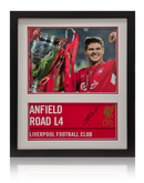 Anfield Road Sign display signed by Steven Gerrard. He made 710 appearances for Liverpool and scored 186 goals. He was also part of Liverpool's famous 2005 Champions League victory against AC Milan after coming from 3-0 down to 3-3 before winning on penalties.
