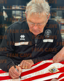 3 photo signed shirt display by Tony Currie who scored 54 goals in 313 league appearances for Sheffield United. Tony also has a stand named after him at Bramall Lane in his honour. This item measures approximately 820mm x 820mm