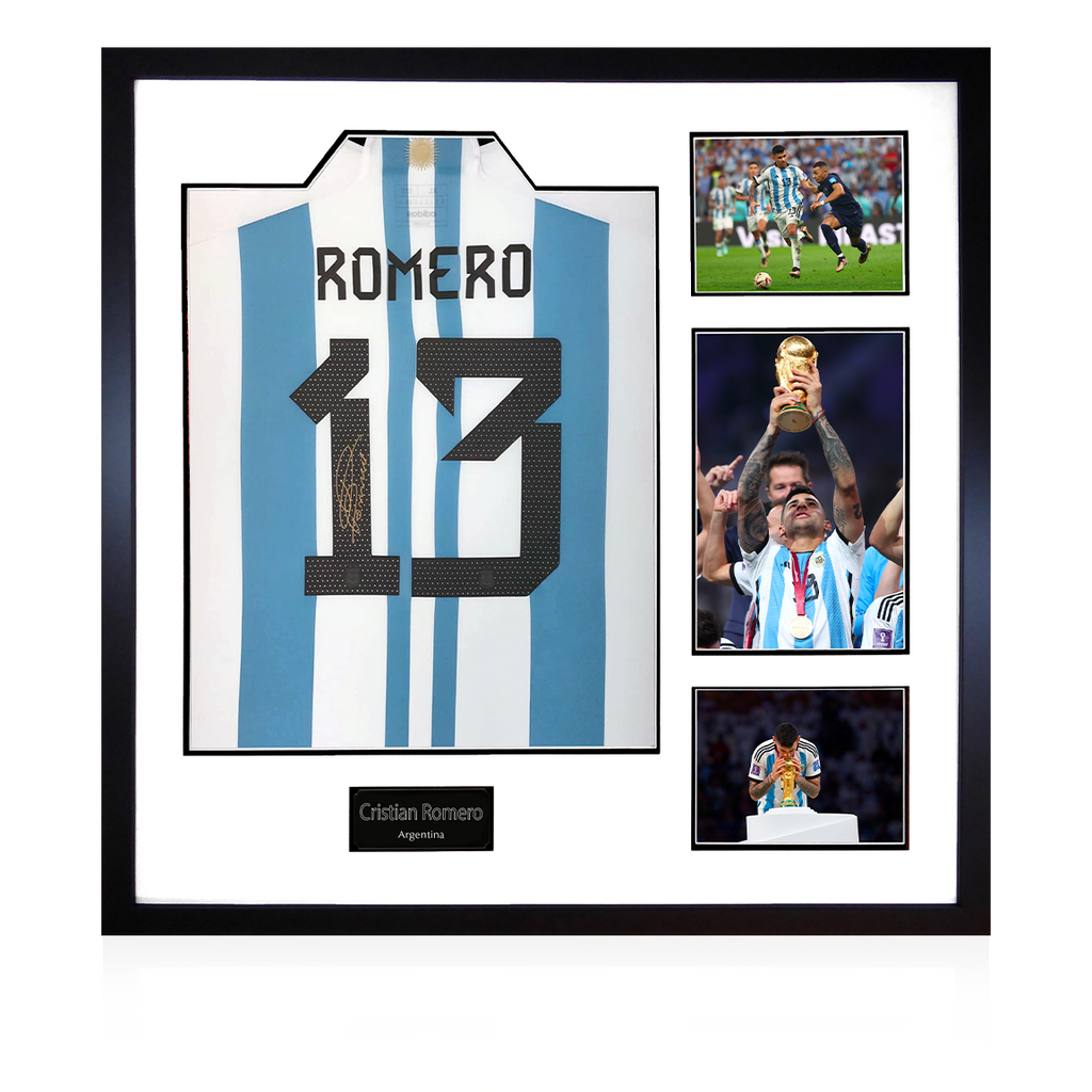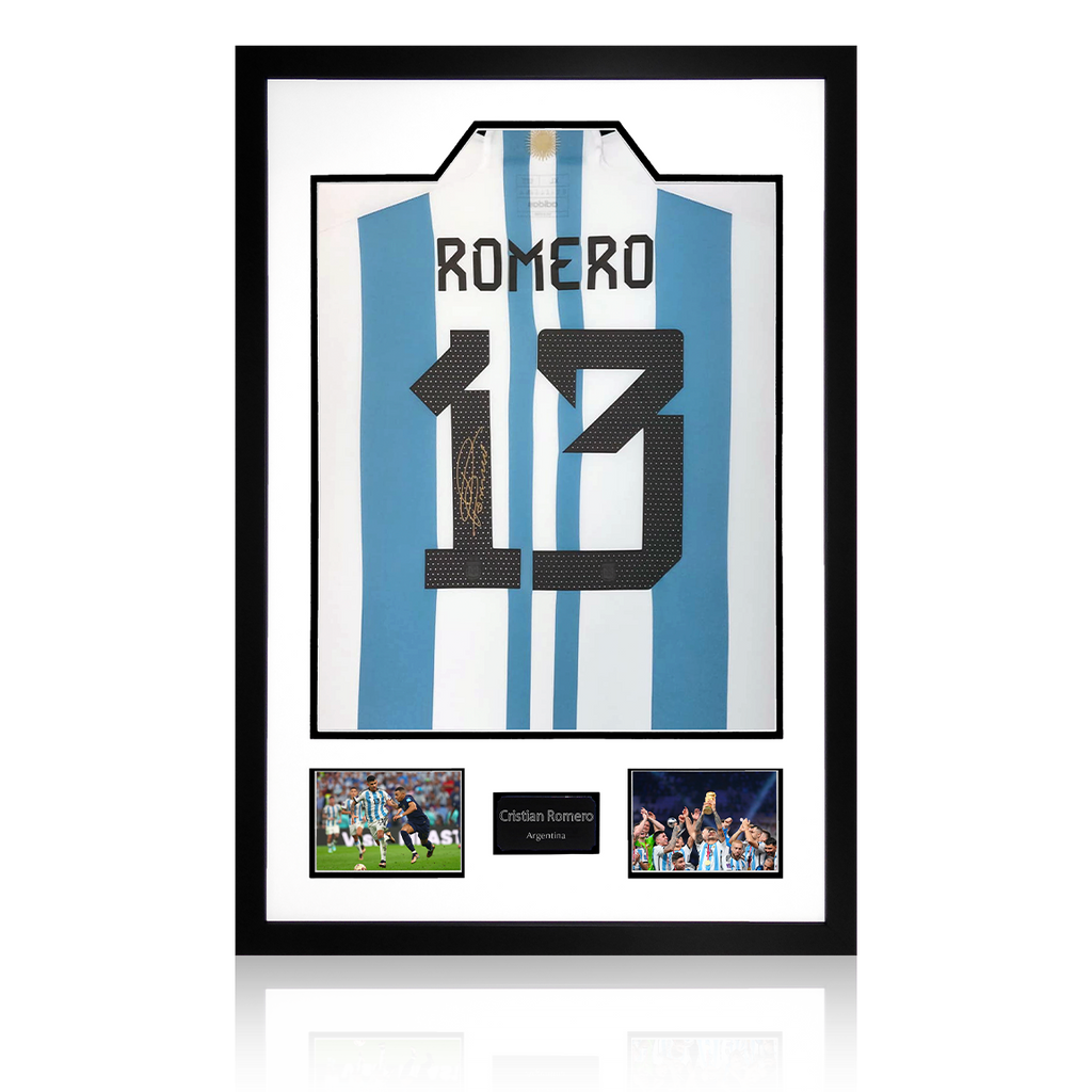 The shirt has been signed by Argentinian defender and world cup winner; Cristian Romero.