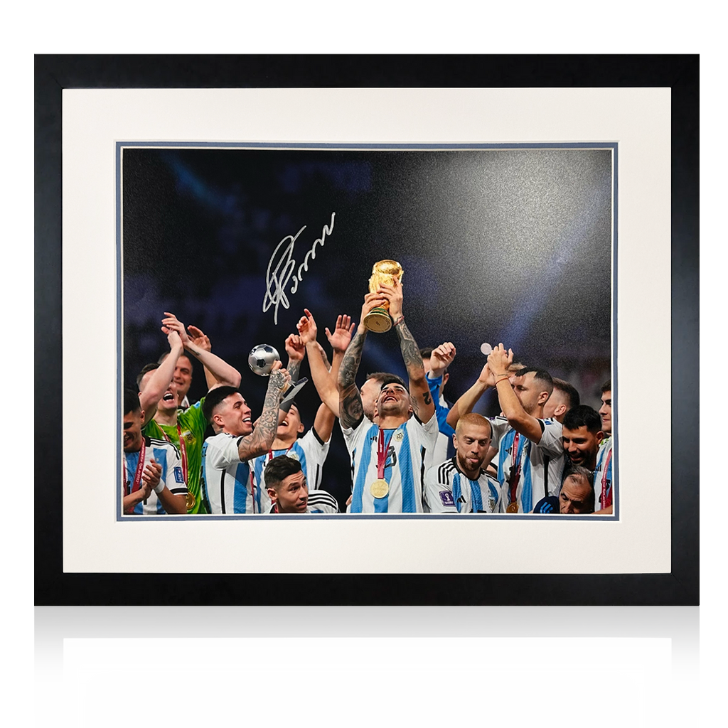 Mounted photo in a frame, signed by Argentinian defender and World Cup Winner;
