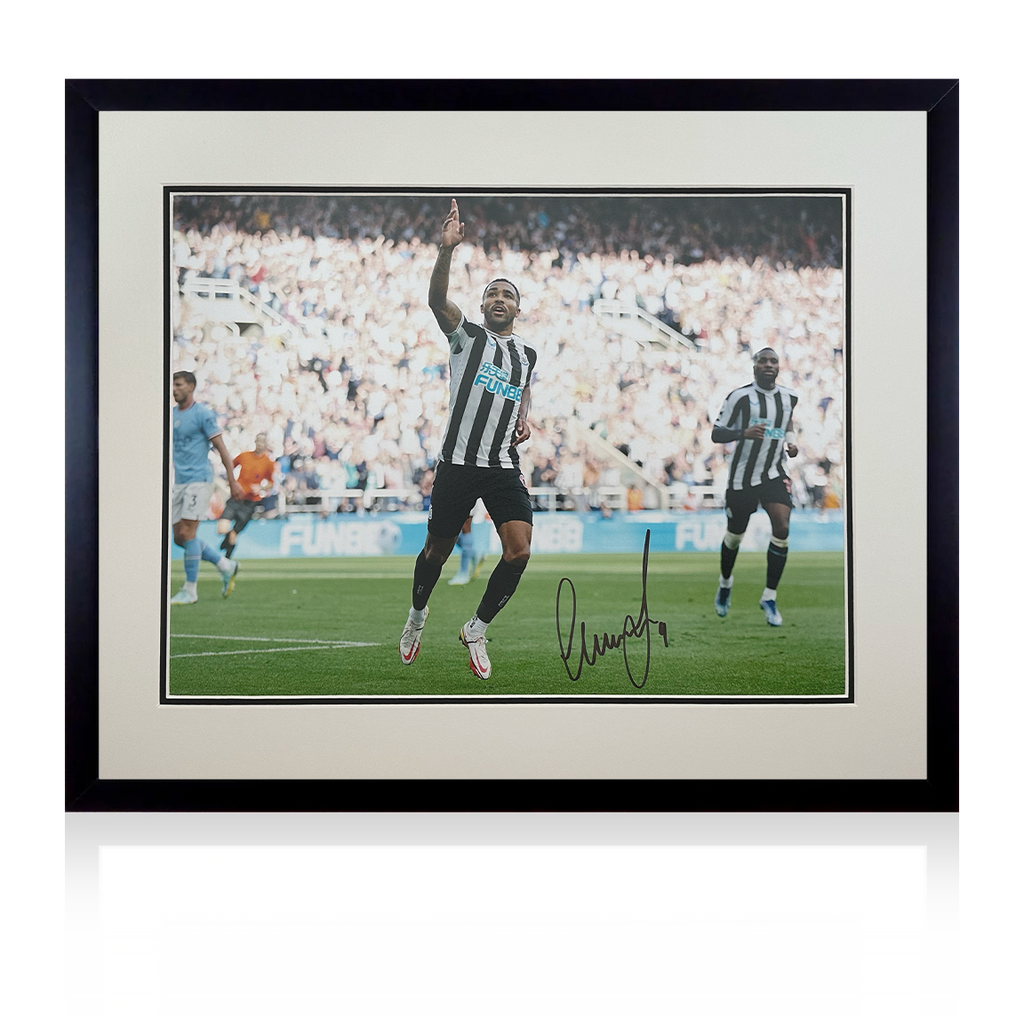 A mounted photo signed by Callum who joined Premier League side Newcastle United on 7th September 2020. This item was signed at an exclusive Fan Cave signing with Callum on 10/11/22. This item measures approximately 530mm x 430mm.