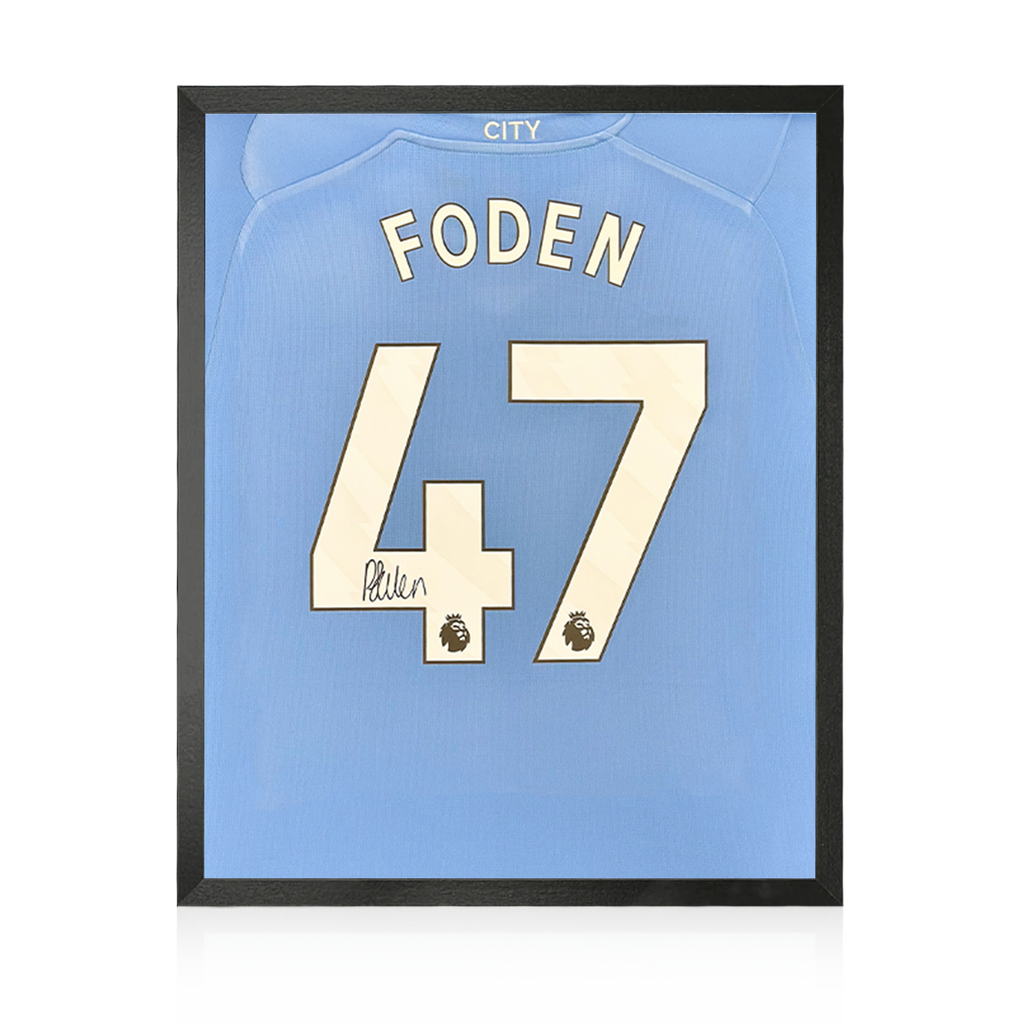 Shirt display signed by Phil Foden. He came through the Manchester City Academy all the way to the first team where he has cemented himself under Pep Guardiola as one of the most talented youngsters in world football which has ...