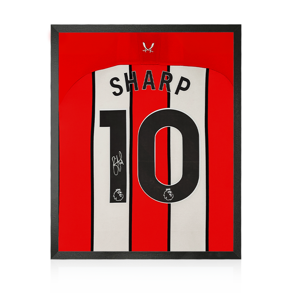 Wooden framed SUFC display containing a shirt signed by legend Billy Sharp. These are Sheffield United official shirts by signed at a private signing exclusively with The Fan Cave in 2023!