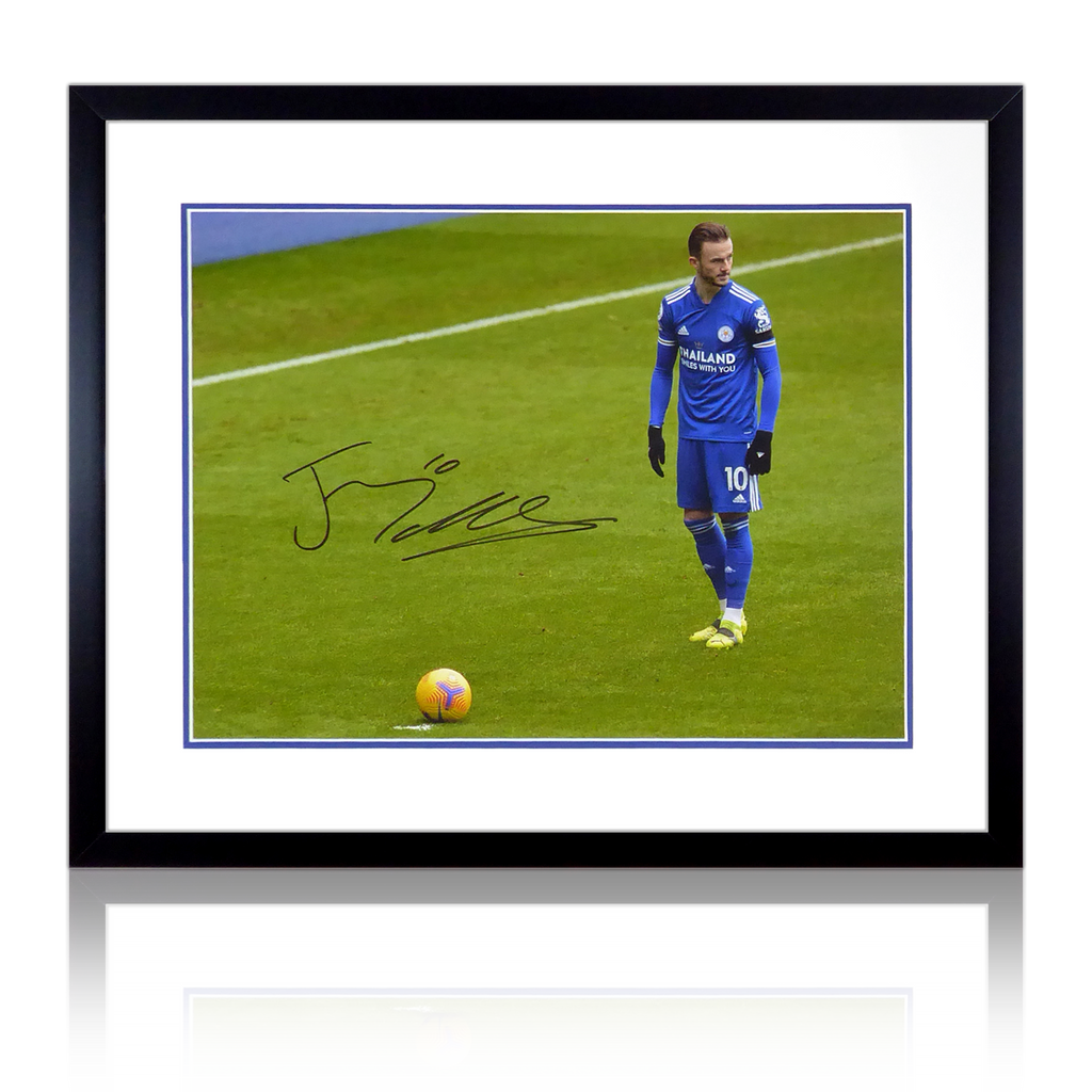 A Framed Mounted Photo Signed by James Maddison who's 20/21 season with Leicester helped the Foxes to 5th in the Premier League and to the clubs first ever FA cup win. This item was signed at an exclusive Fan Cave signing with ...