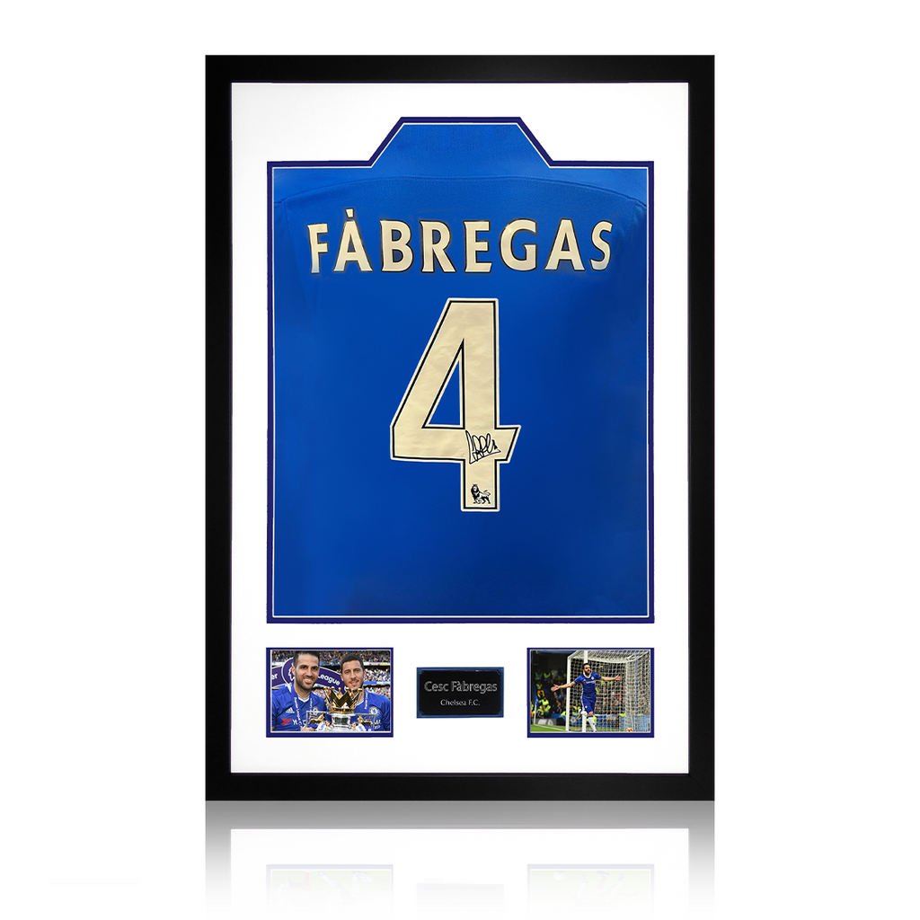 Beautifully presented Premium Frame with signed Chelsea shirt by Cesc Fàbregas. The frame measures approximately 850mm x 600mm. This item is accompanied with an certificate of authenticity from The Fan Cave & third party au...