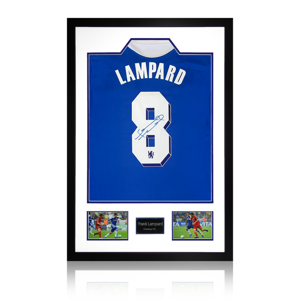 Beautifully presented Premium Frame with signed Chelsea shirt by Frank Lampard . The frame measures approximately 850mm x 600mm. This item is accompanied with an certificate of authenticity from The Fan Cave & third party a...