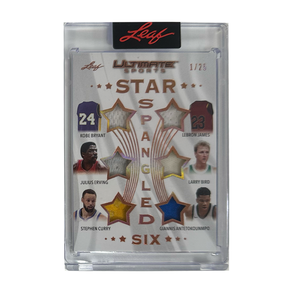 Leaf Star Spangled Six Kobe Bryant, Lebron James, Julius Erving, Larry Bird, Stephen Curry & Giannis Antetokounmpo 1/25
