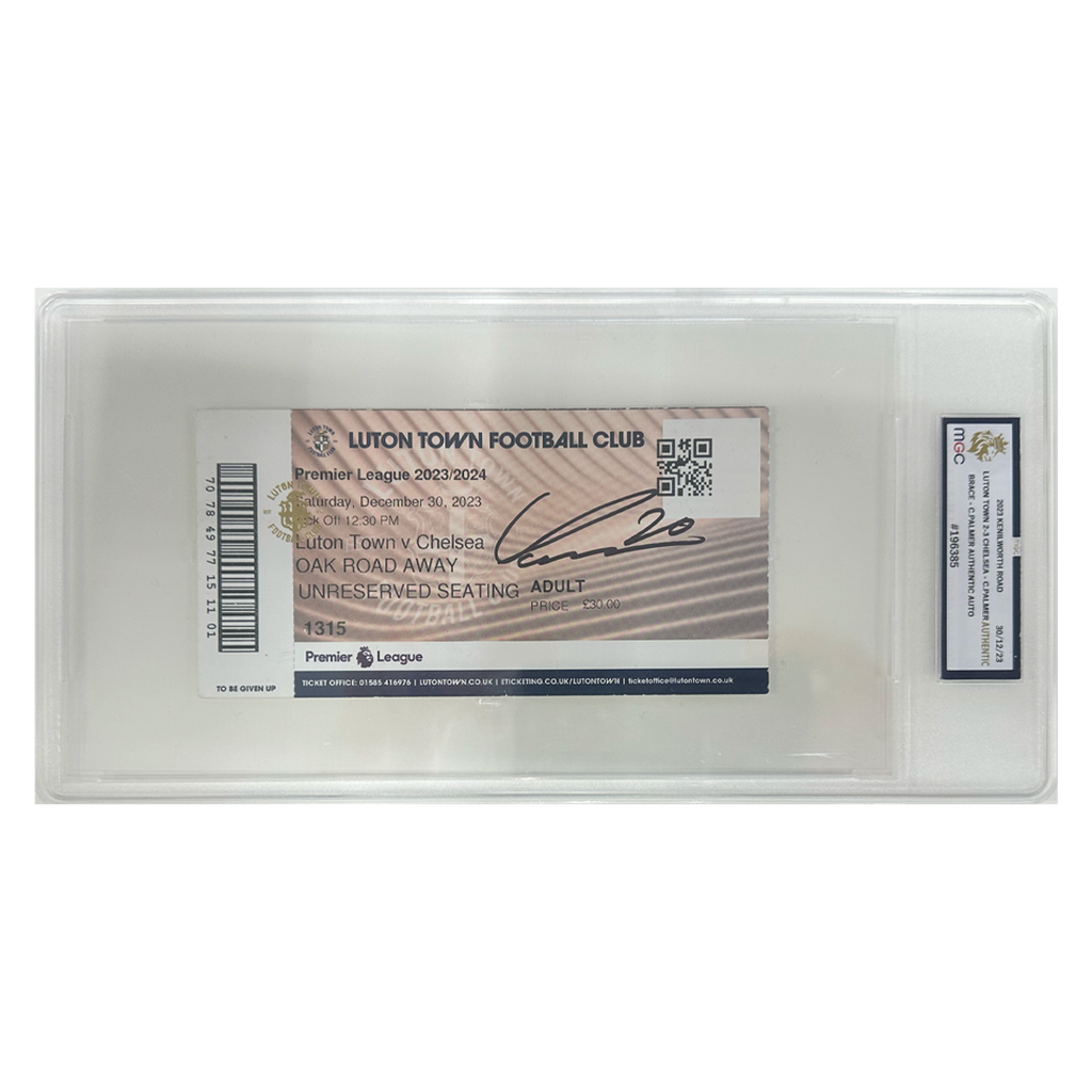 Slabbed Chelsea v Luton Ticket signed by Cole Palmer. In this match, Cole Palmer scored a brace for Chelsea. This item is accompanied with an certificate of authenticity from The Fan Cave.