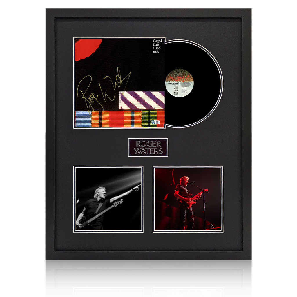 This fantastic looking display measuring approximately 860mm x 705mm contains the Pink Floyd LP signed by Roger Waters . This is presented with a plaque and two iconic performance photos. The autograph includes an official AFTA...