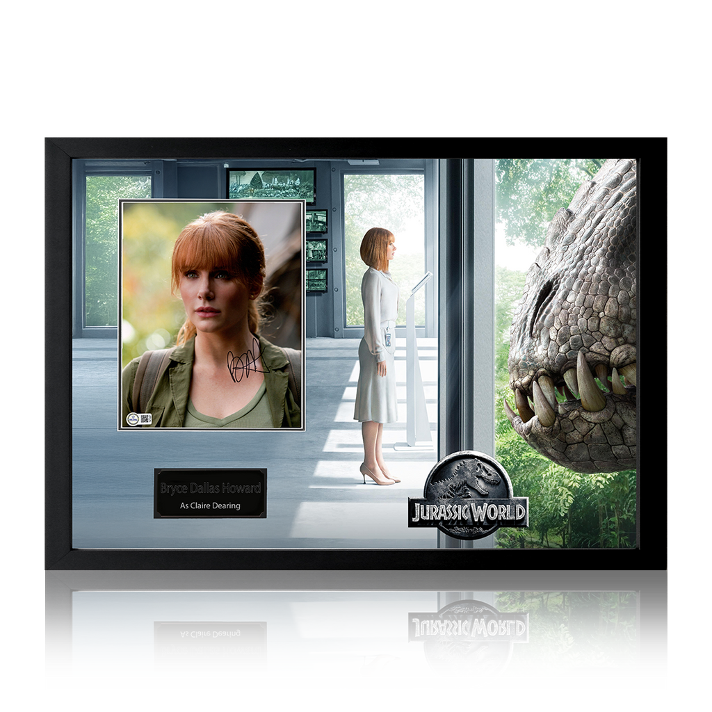 Wonderfully presented framed display of Bryce Dallas Howard from Jurassic World. This display containing a signed photo of Bryce Dallas Howard, has been mounted in a print of the poster from the movie and would make...