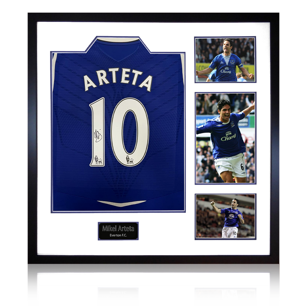 Beautifully presented Elite Frame with signed Everton 08/09 shirt from Mikel Arteta . This item measures approximately 820mm x 820mm. This item is accompanied with an certificate of authenticity from The Fan Cave.