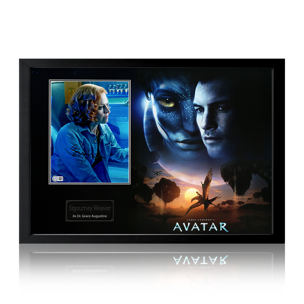 Wonderfully presented framed display of Sigourney Weaver in Avatar. This display containing a signed photo of Sigourney Weaver, has been mounted in a print of the poster from the movie and would make a great additio...