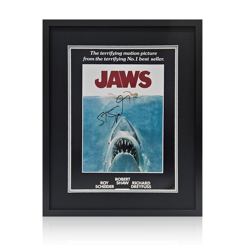 Steven Spielberg signed Jaws in a Deluxe Mount Frame. The size of the product is 520 x 420 mm.
