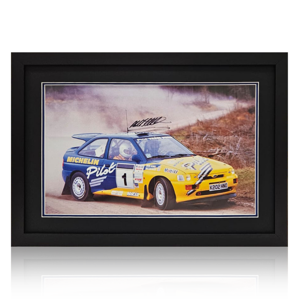 Original signed 90's Ford Motorsport poster of 1994 British Rally Champion; Malcolm Wilson. This cropped and double mounted image in a wooden frame has been signed by Malcolm and would make a great addition to any vintage Ford ...