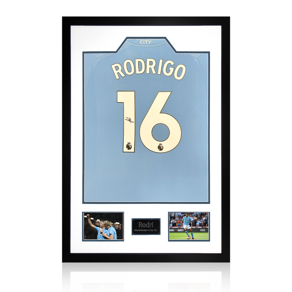 Beautifully presented Elite Frame with signed Manchester City shirt by Phil Foden. This item was signed at an exclusive Fan Cave signing with Phil on the 30/08/24. The frame measures approximately 820mm x 820mm. This item is a...