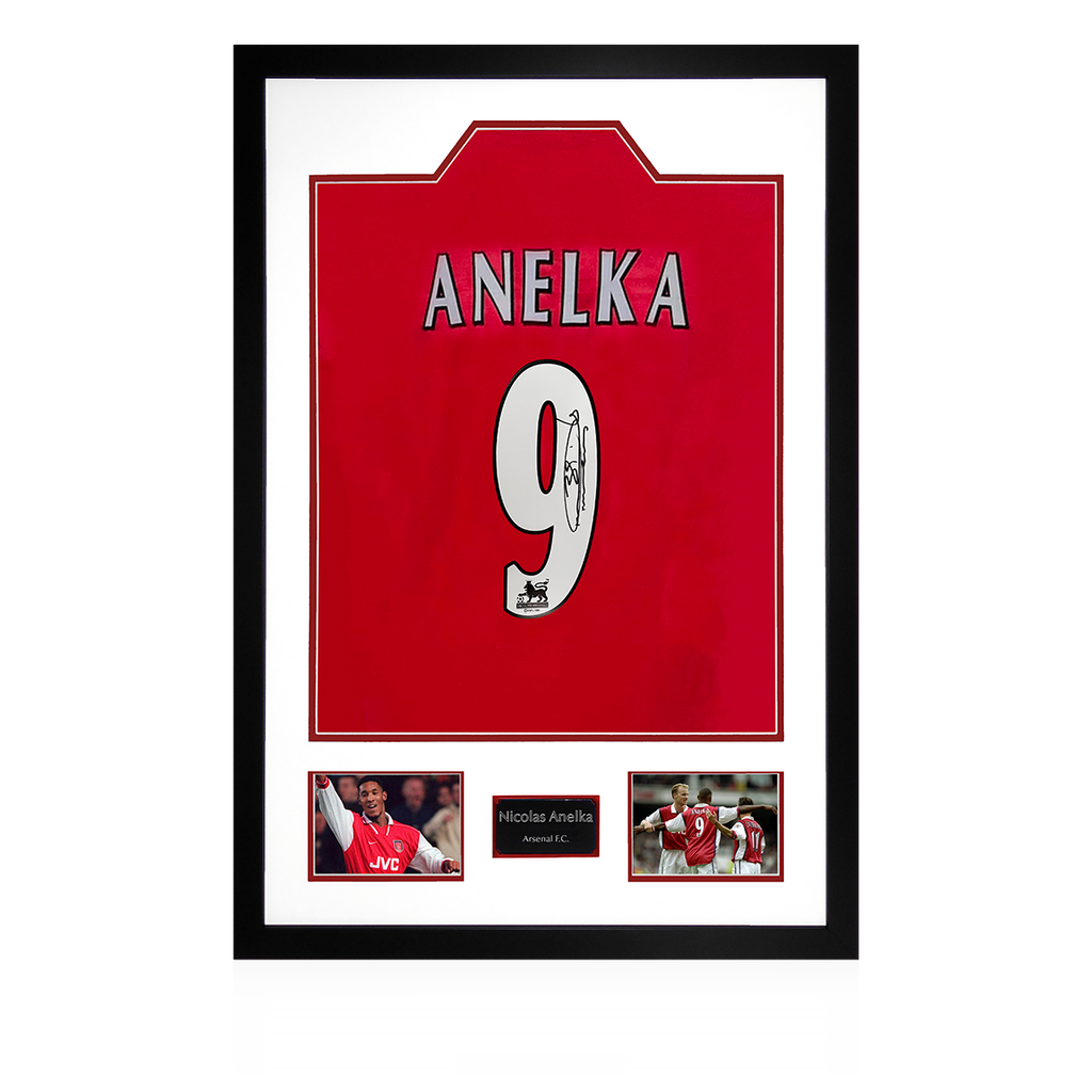 Beautifully presented Premium Frame with signed Arsenal shirt from Nicolas Anelka. This item measures approximately 690mm x 480mm. This item is accompanied with an certificate of authenticity from The Fan Cave.