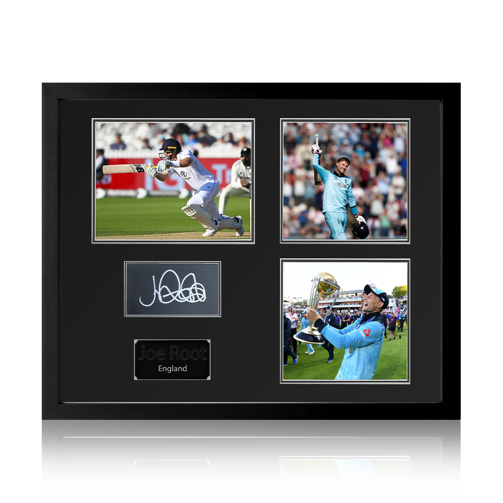 Joe Root signed index card in a Compact Frame. This would make a great addition to any England Cricket collection. This item measures approximately 550mm x 450mm. This item is accompanied with an certificate of authenticity fro...