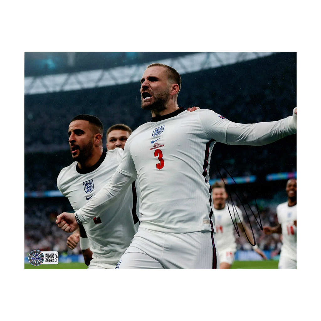 A signed 10x8 Image of Luke Shaw. This item is accompanied with an certificate of authenticity from The Fan Cave. This image would make a great addition to any football collection.