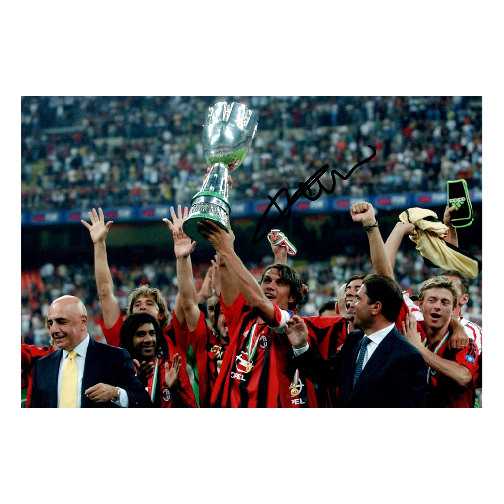 A signed 12x8 of Paolo Maldini. This item is accompanied with an certificate of authenticity from The Fan Cave. This image would make a great addition to any football collection.