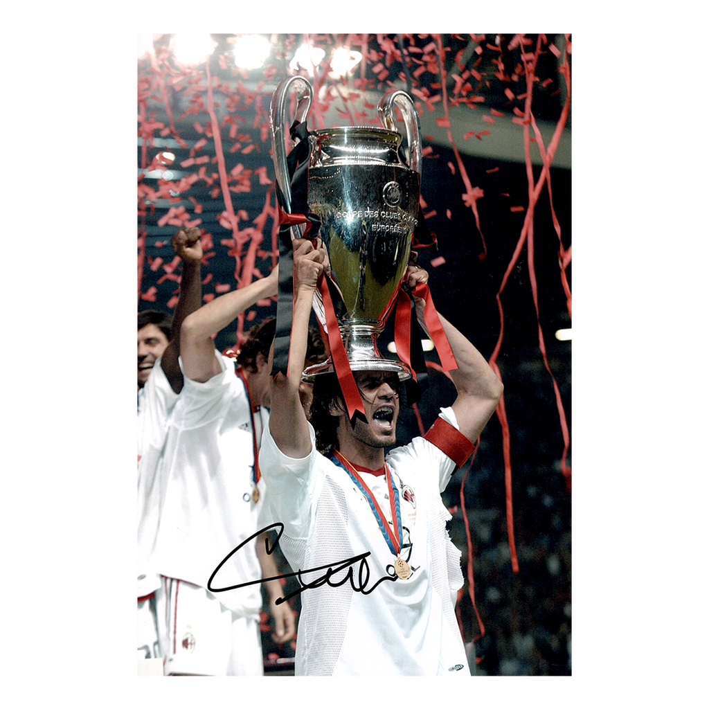 A signed 12x8 of Paolo Maldini. This item is accompanied with an certificate of authenticity from The Fan Cave. This image would make a great addition to any football collection.