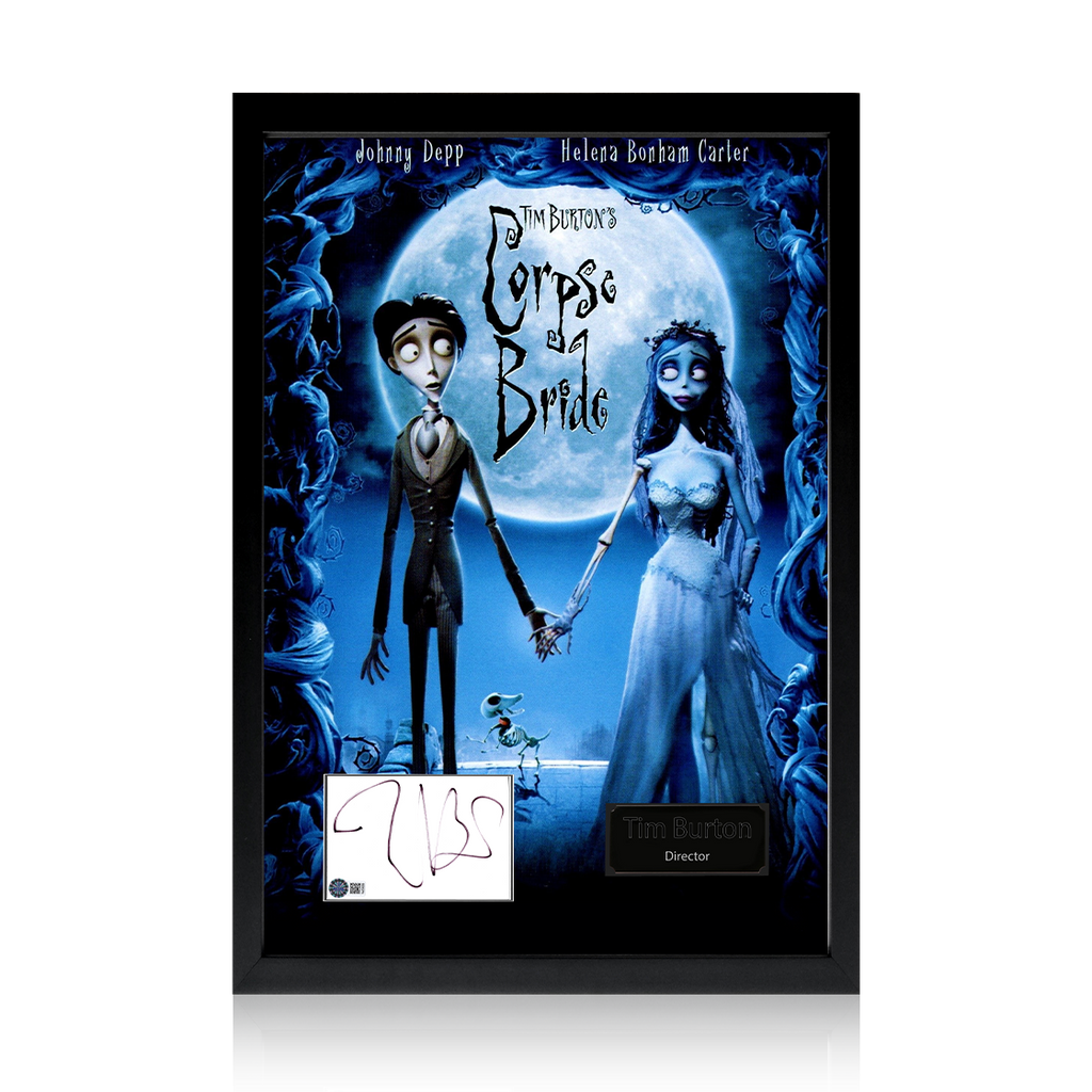 Beautifully presented Corpse Bride display with a signed index card by director; Tim Burton. Please note signatures may vary. This display would make a great addition to any movie collection. The autograph includes an AFTAL Cer...