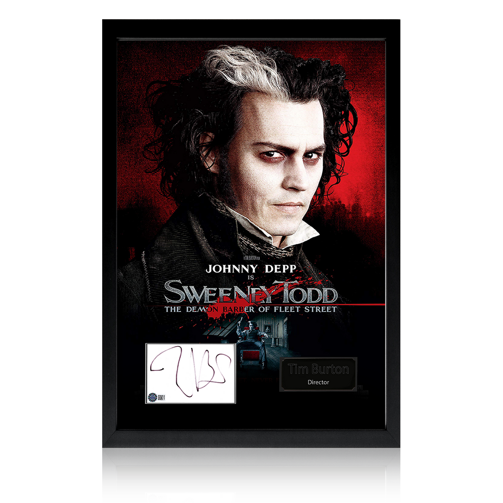 Beautifully presented Sweeney Todd: The Demon Barber of Fleet Street display with a signed index card by director; Tim Burton. Please note signatures may vary. This display would make a great addition to any movie collection. T...