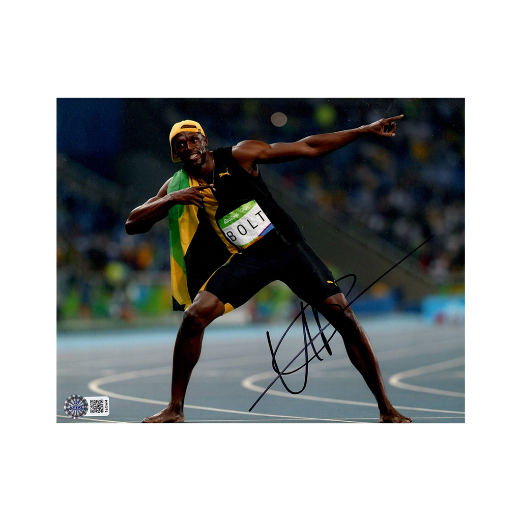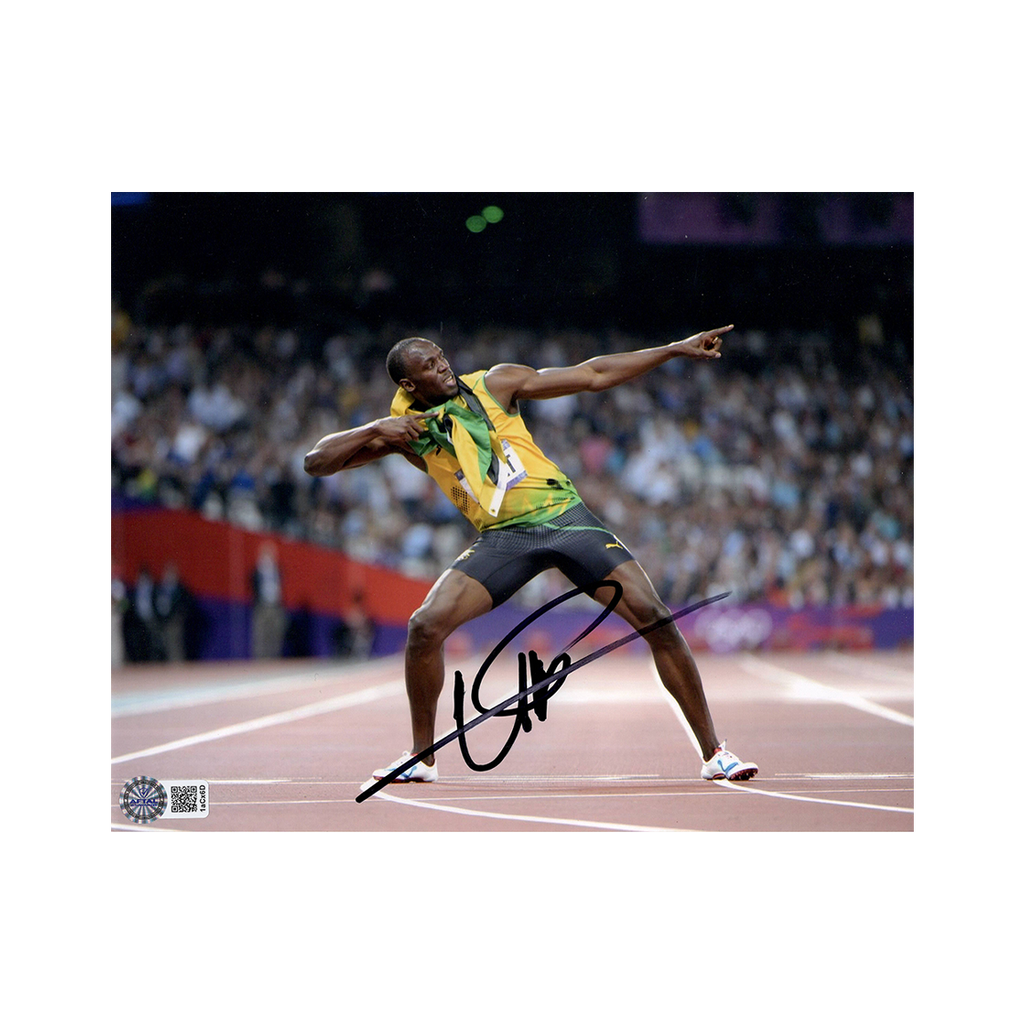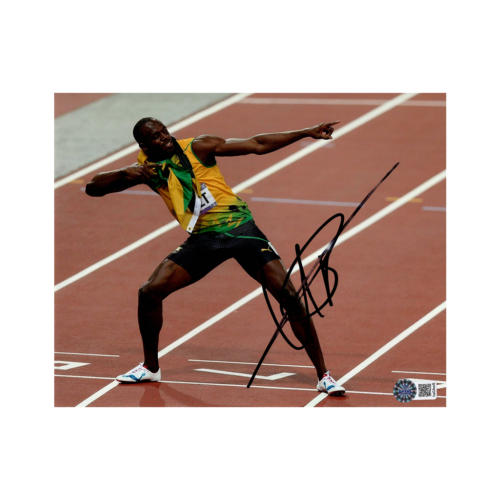 10x8 image signed by Olympic legend Usain Bolt. This image would make a great addition to any athletics collection. The autograph includes an AFTAL Authentication and serial number for authentication purposes.