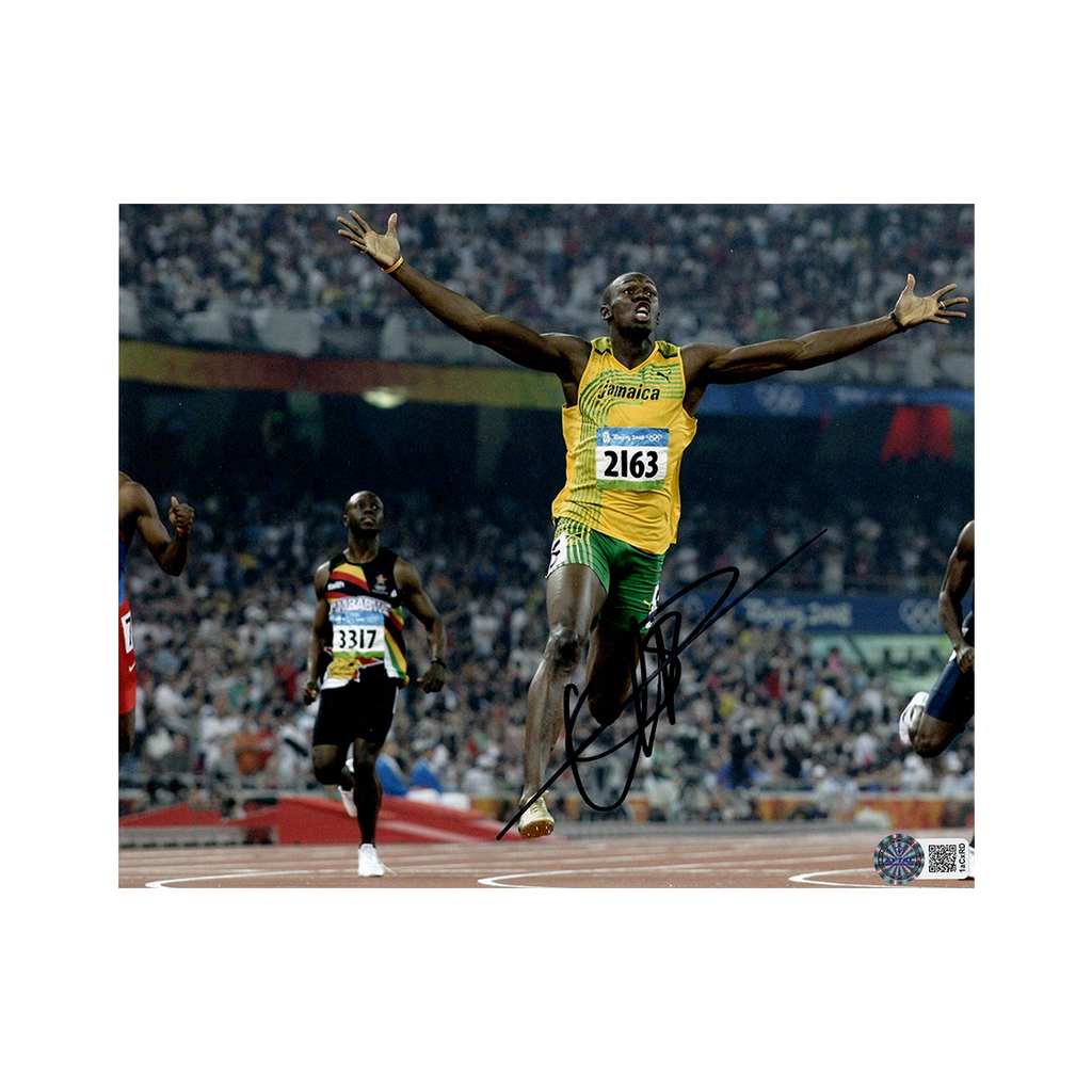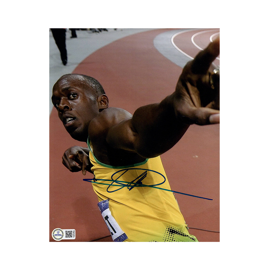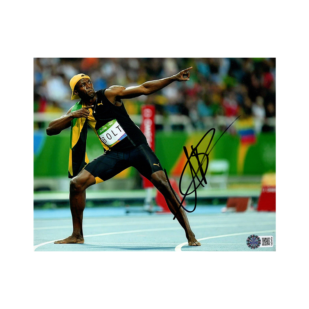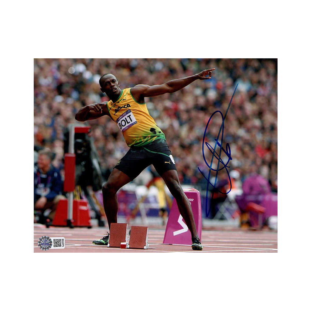10x8 image signed by Olympic legend Usain Bolt. This image would make a great addition to any athletics collection. The autograph includes an AFTAL Authentication and serial number for authentication purposes.