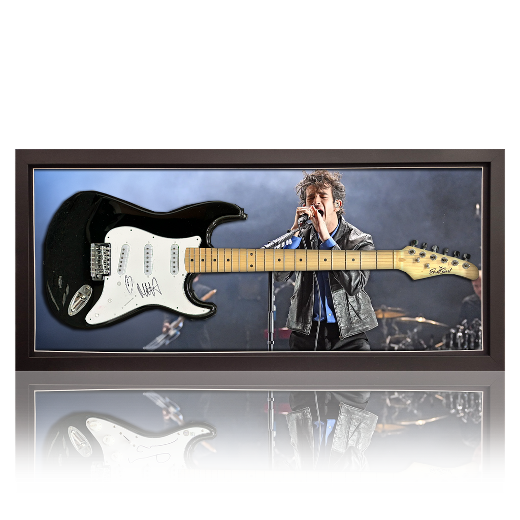 This guitar has been signed by 1975 singer Matt Healy. A wonderfully presented piece of britpop history, this would look fantastic as part of any music collection. This item measures approximately 1067mm x 458mm. This item i...
