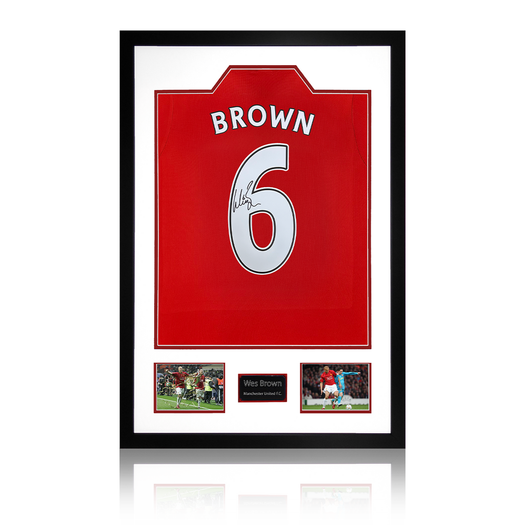 3 photo signed shirt display by Wes Brown. This product was signed at a private signing with Wes with The Fan Cave on the 23rd June, 2025. This item is accompanied with an certificate of authenticity from The Fan Cave.
