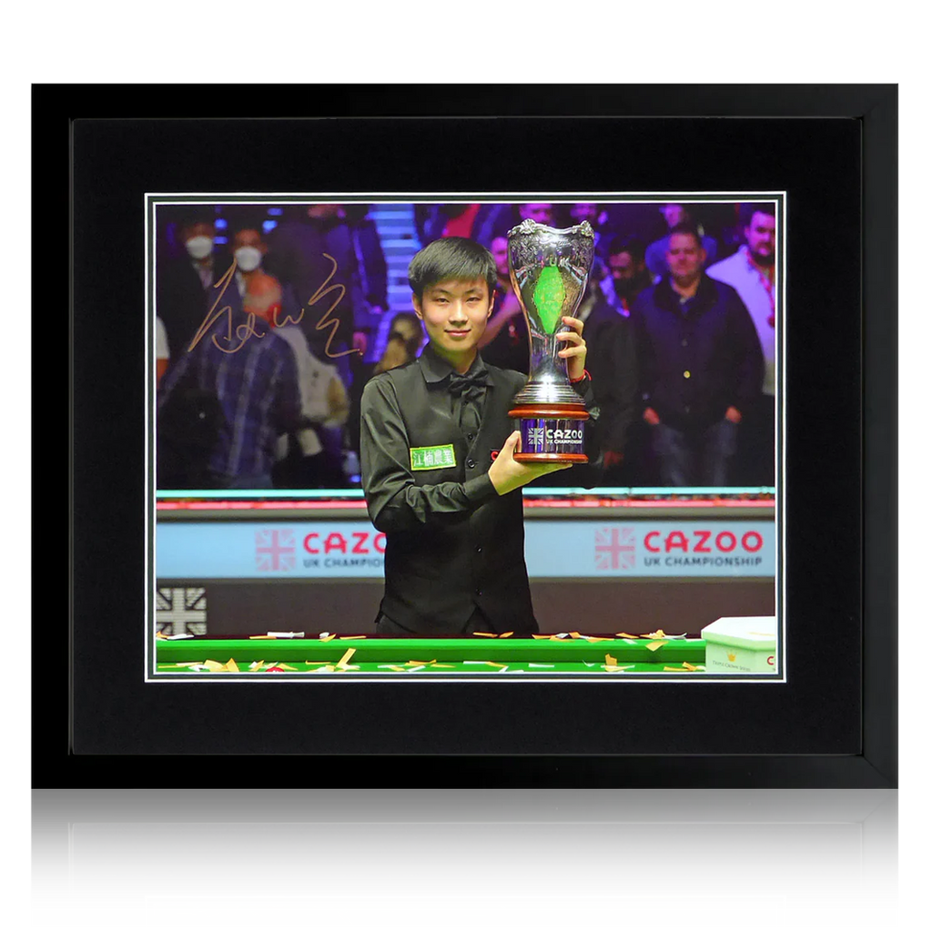Zhai Xintong signed red ball in a compact frame. This product was signed at a private signing with Zhao.