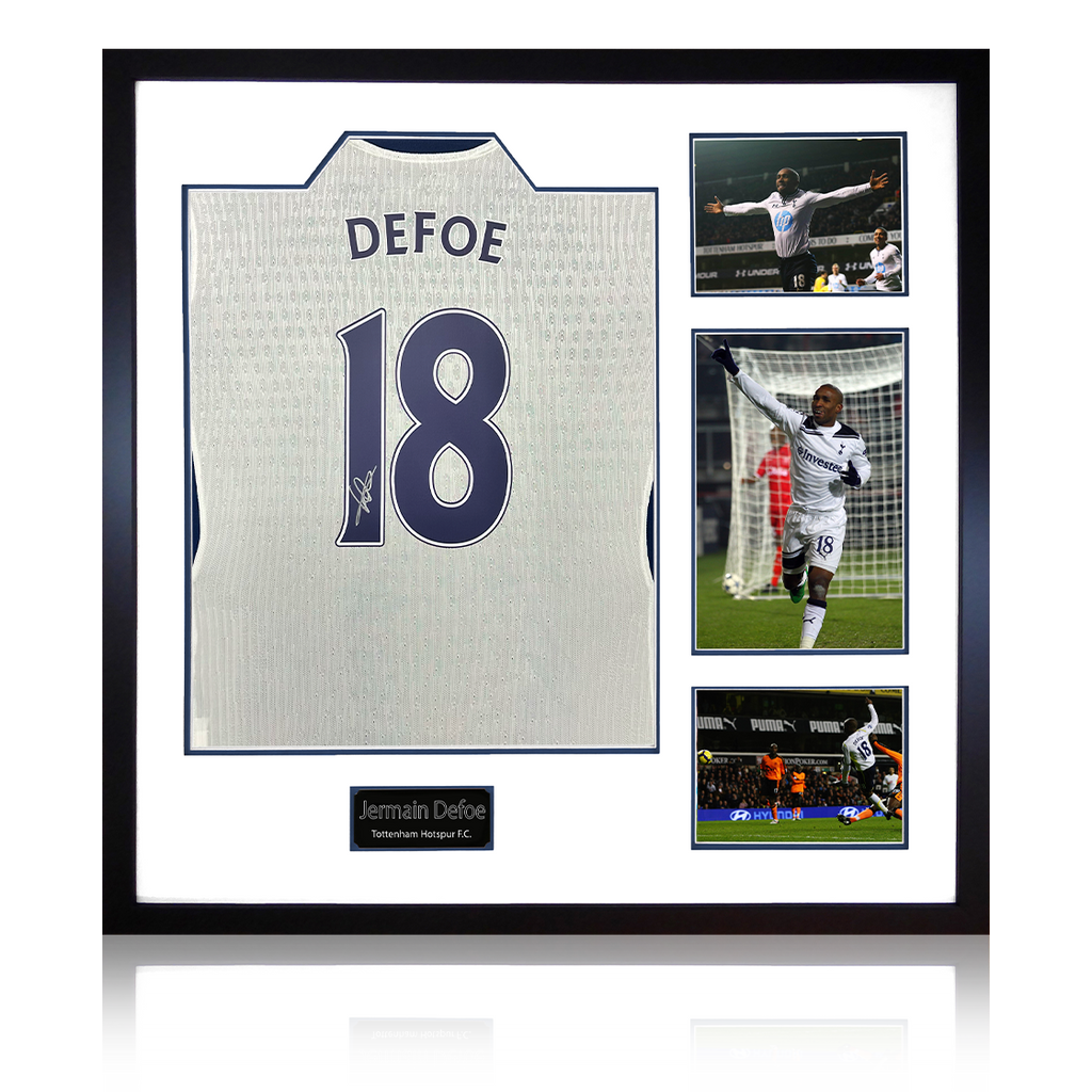 Wooden framed Tottenham Hotspur display containing a shirt signed by forward, Jermain Defoe. These are Tottenham Hotspur official shirts. The items were signed at a private signing exclusively with The Fan Cave on 11/05/25! Thi...