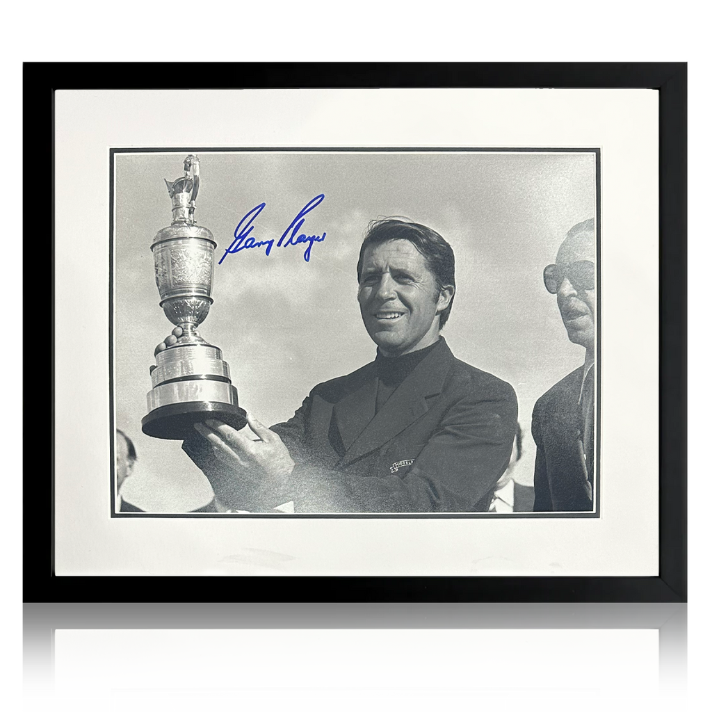 Beautifully presented Deluxe Mount Frame with signed 16x12 of Gary Player. This item measures approximately 550mm x 450mm. This item is accompanied with an certificate of authenticity from The Fan Cave.