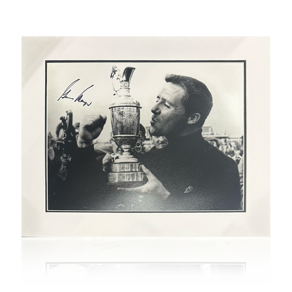 Beautifully presented Deluxe Mount with signed 16x12 of Gary Player. This item measures approximately 500mm x 400mm. This item is accompanied with an certificate of authenticity from The Fan Cave.