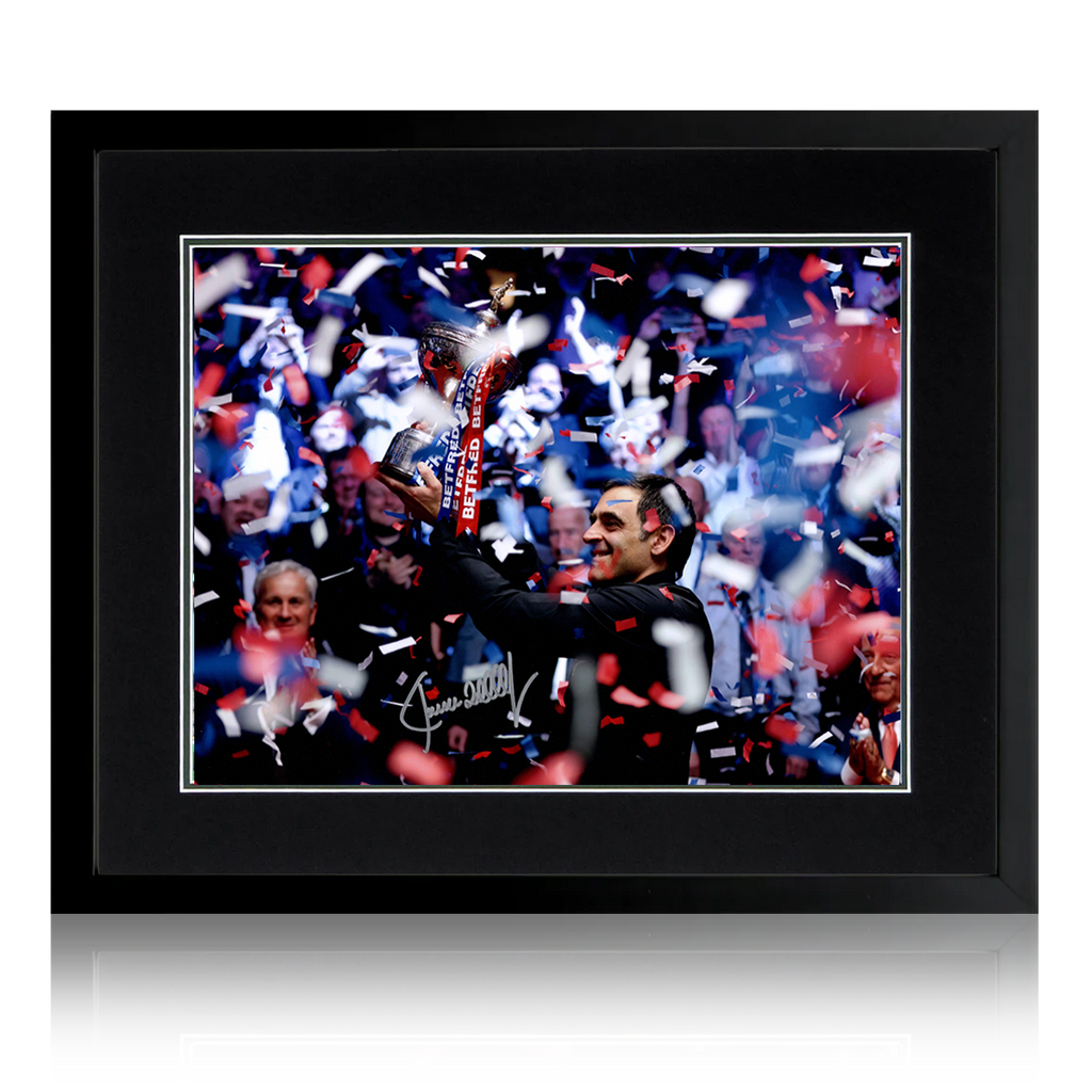 Beautifully presented Deluxe Mount with signed 16x12 Ronnie O’Sullivan image. This item measures approximately 550mm x 450mm. This item is accompanied with an certificate of authenticity from The Fan Cave.