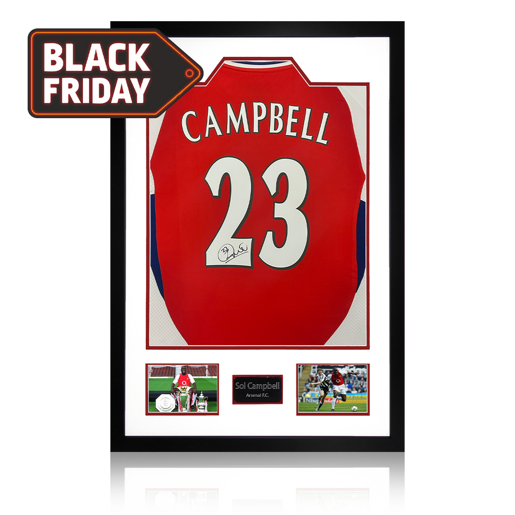 A signed Arsenal shirt by Sol Campbell in a Premium Frame. The item was signed at a private signing on the 06/03/25. This item is accompanied with an certificate of authenticity from The Fan Cave.