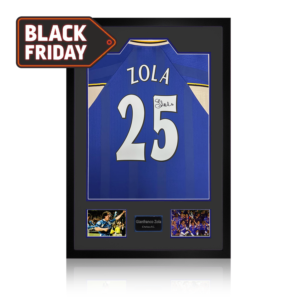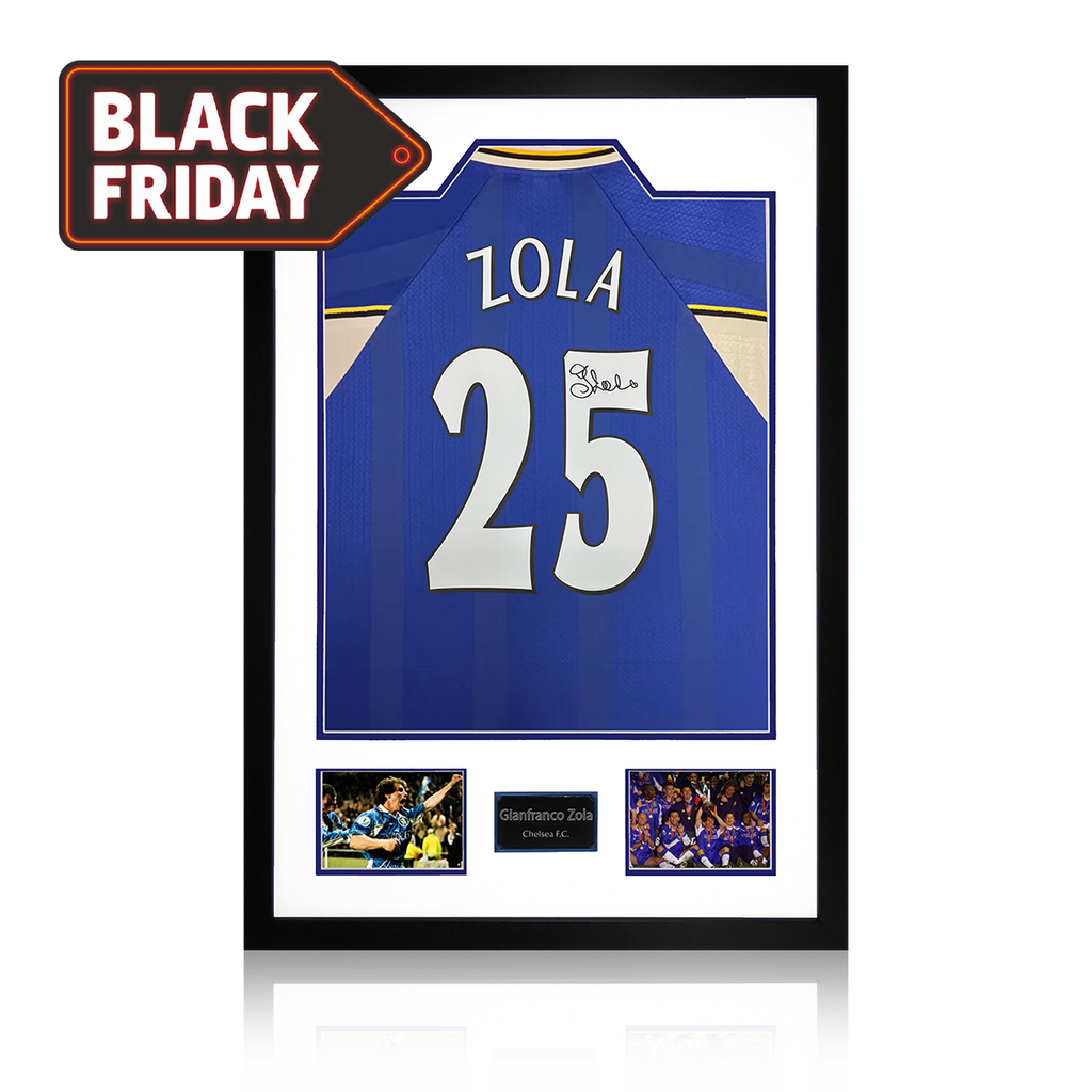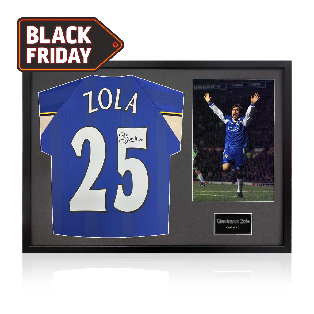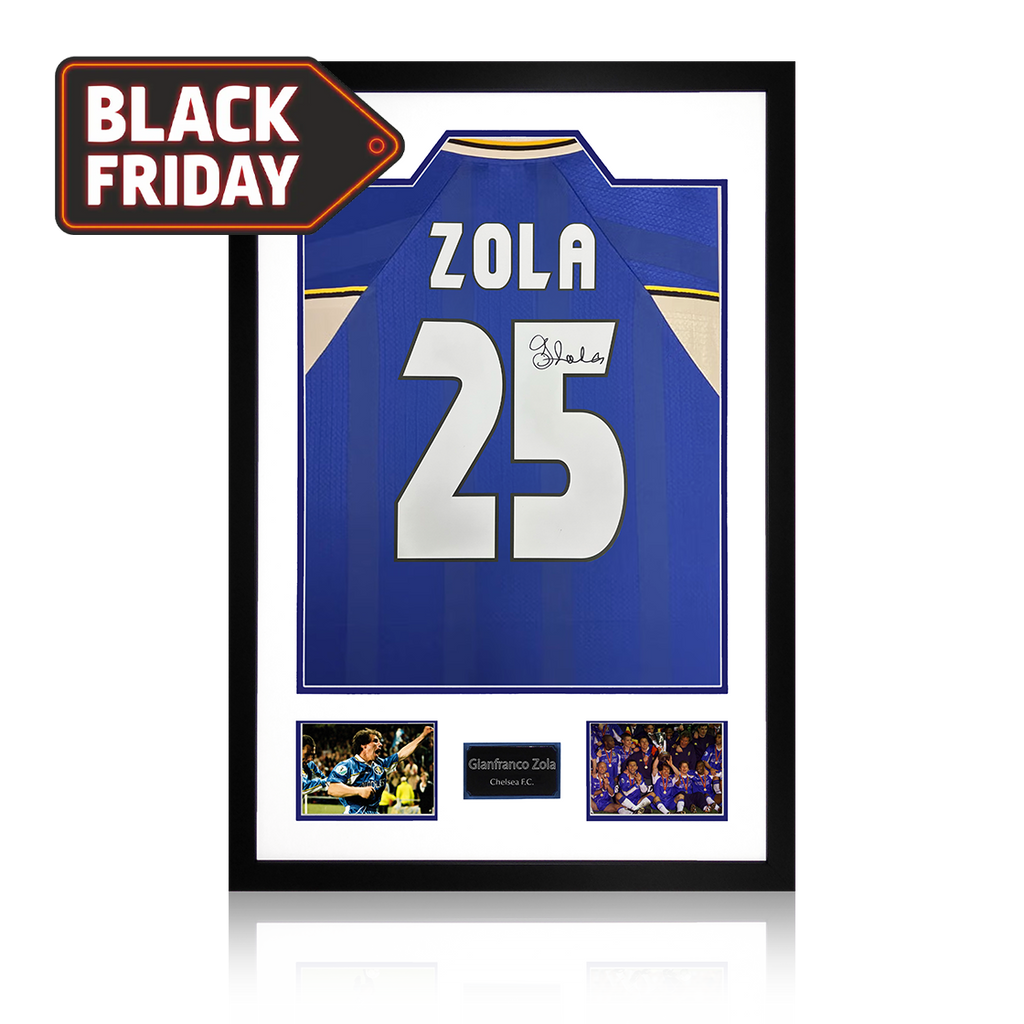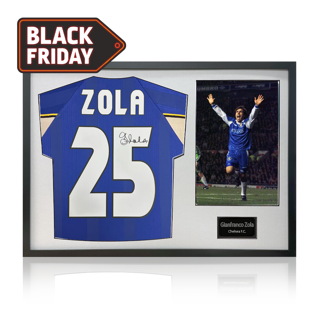 Beautifully presented Premium Frame with signed Chelsea shirt by Gianfranco Zola. This item was signed at an exclusive Fan Cave signing with Gianfranco Zola on the 02/11/25. The frame measures approximately 850mm x 600mm. This ...