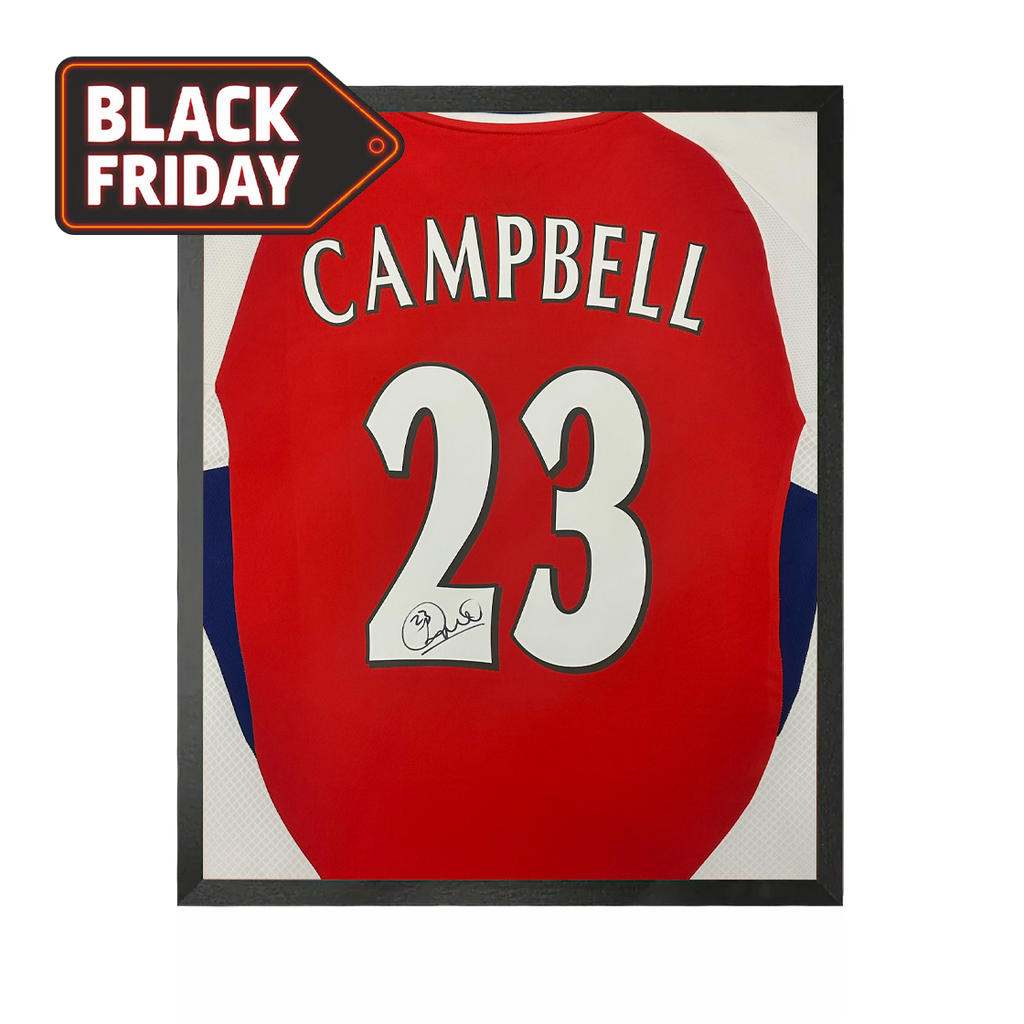 A signed Arsenal shirt by Sol Campbell in a Classic Frame. The item was signed at a private signing on the 06/03/25. This item is accompanied with an certificate of authenticity from The Fan Cave.