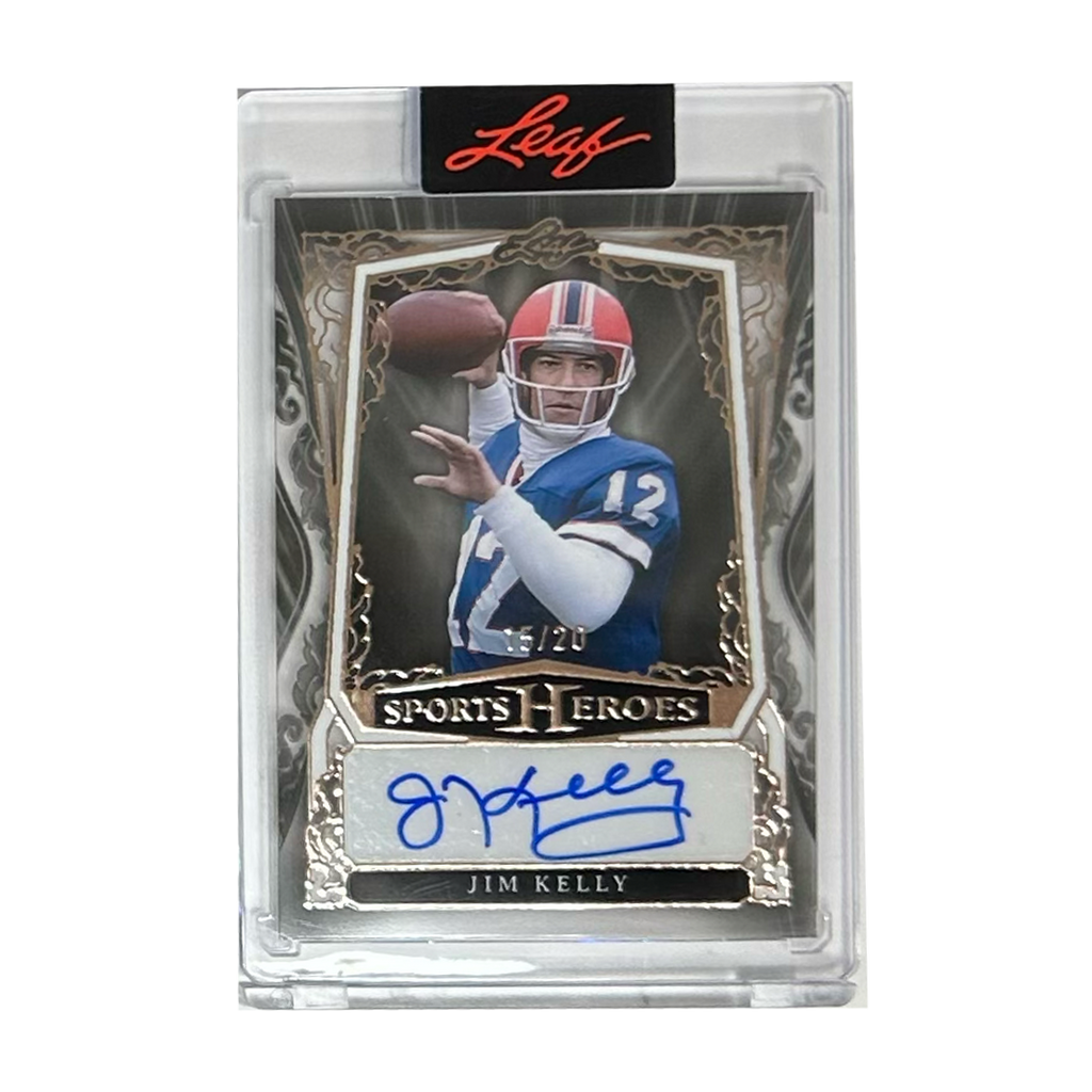 Leaf Sports Heroes Jim Kelly 15/20 Authenticity of these memorabilia pieces is guaranteed by Leaf Trading Cards.