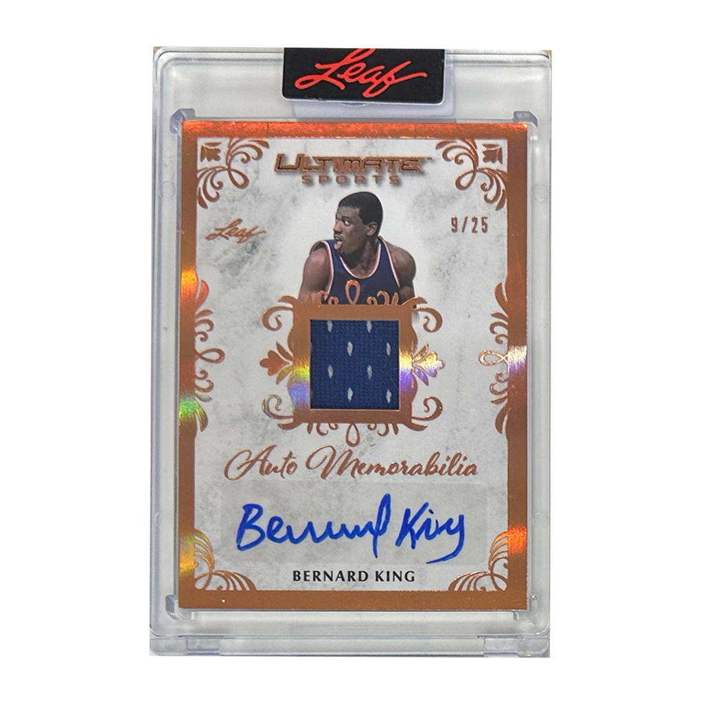 On the front of this card are pieces of game-used memorabilia of: Bernard King.