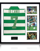 Celtic shirt display signed by Paolo Di Canio. These are wooden framed and contain 3 iconic photos and an etched plaque. This item was signed at an Fan Cave signing with Paolo on the 28/03/25. The frame measures approximately 820mm x 820mm. This item is accompanied with an certificate of authenticity from The Fan Cave.