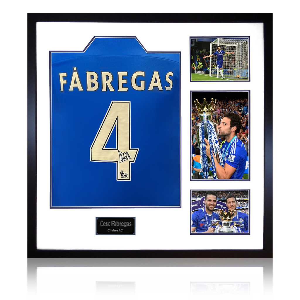 Beautifully presented Premium Frame with signed Chelsea shirt by Cesc Fàbregas. The frame measures approximately 820mm x 820mm. This item is accompanied with an certificate of authenticity from The Fan Cave & third party au...