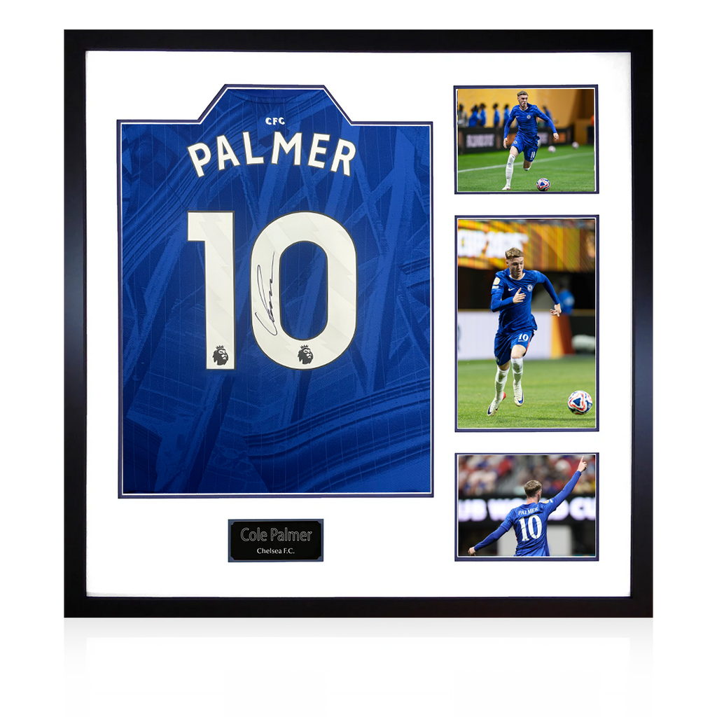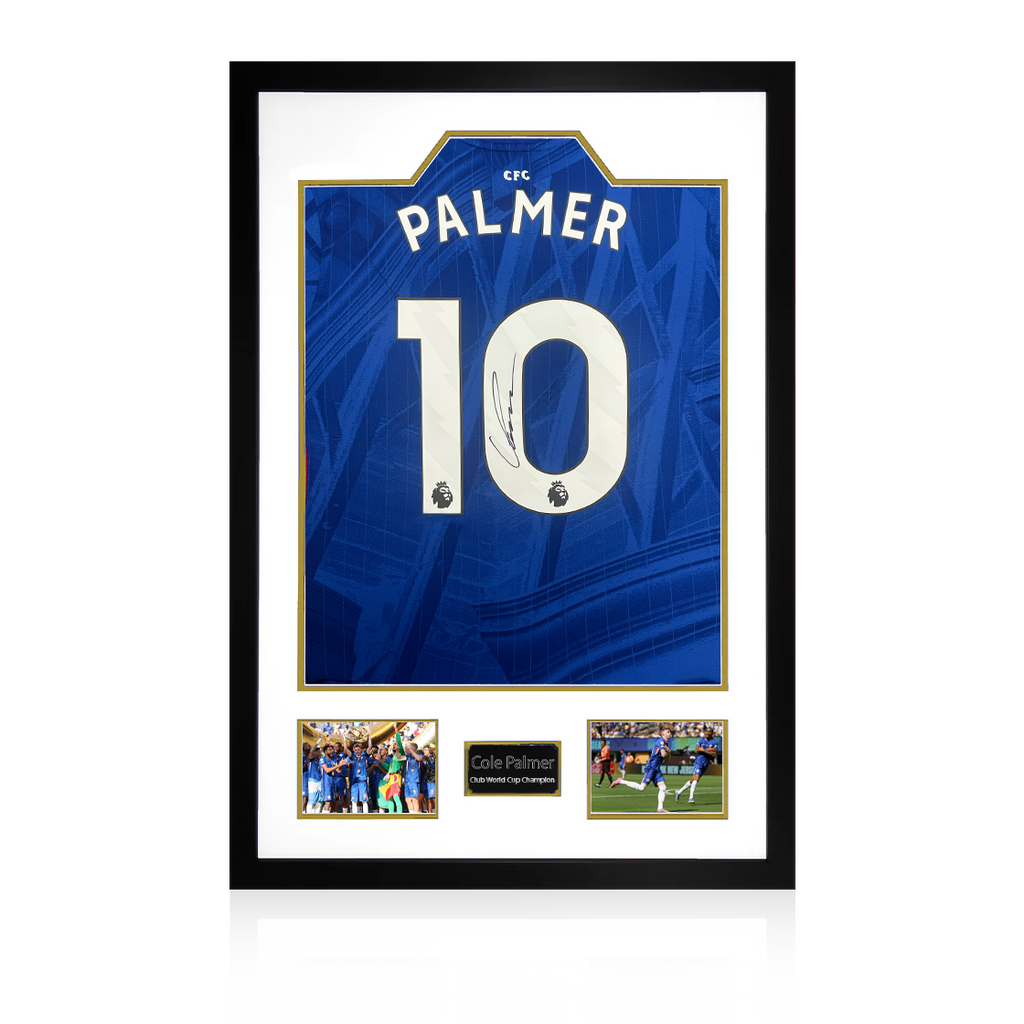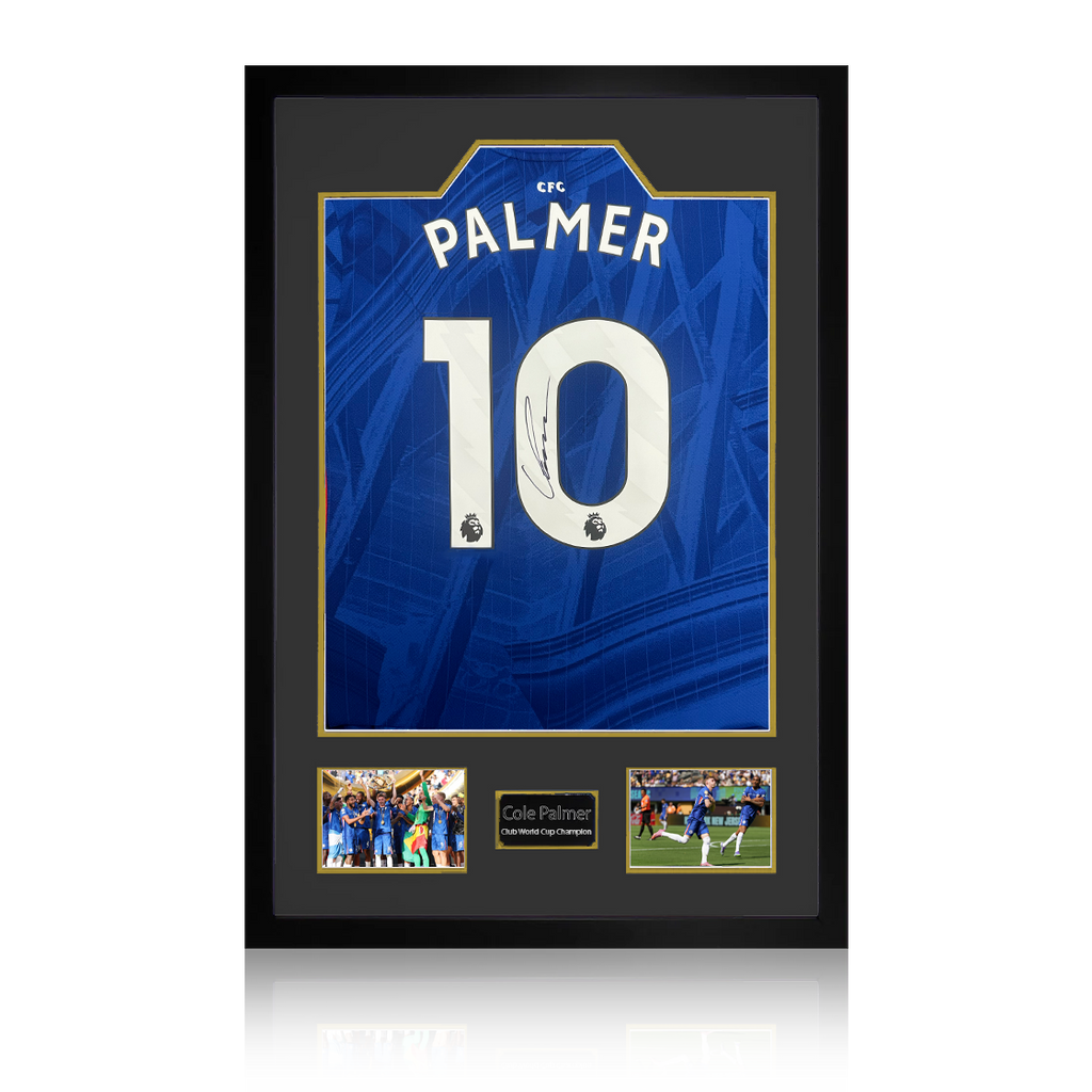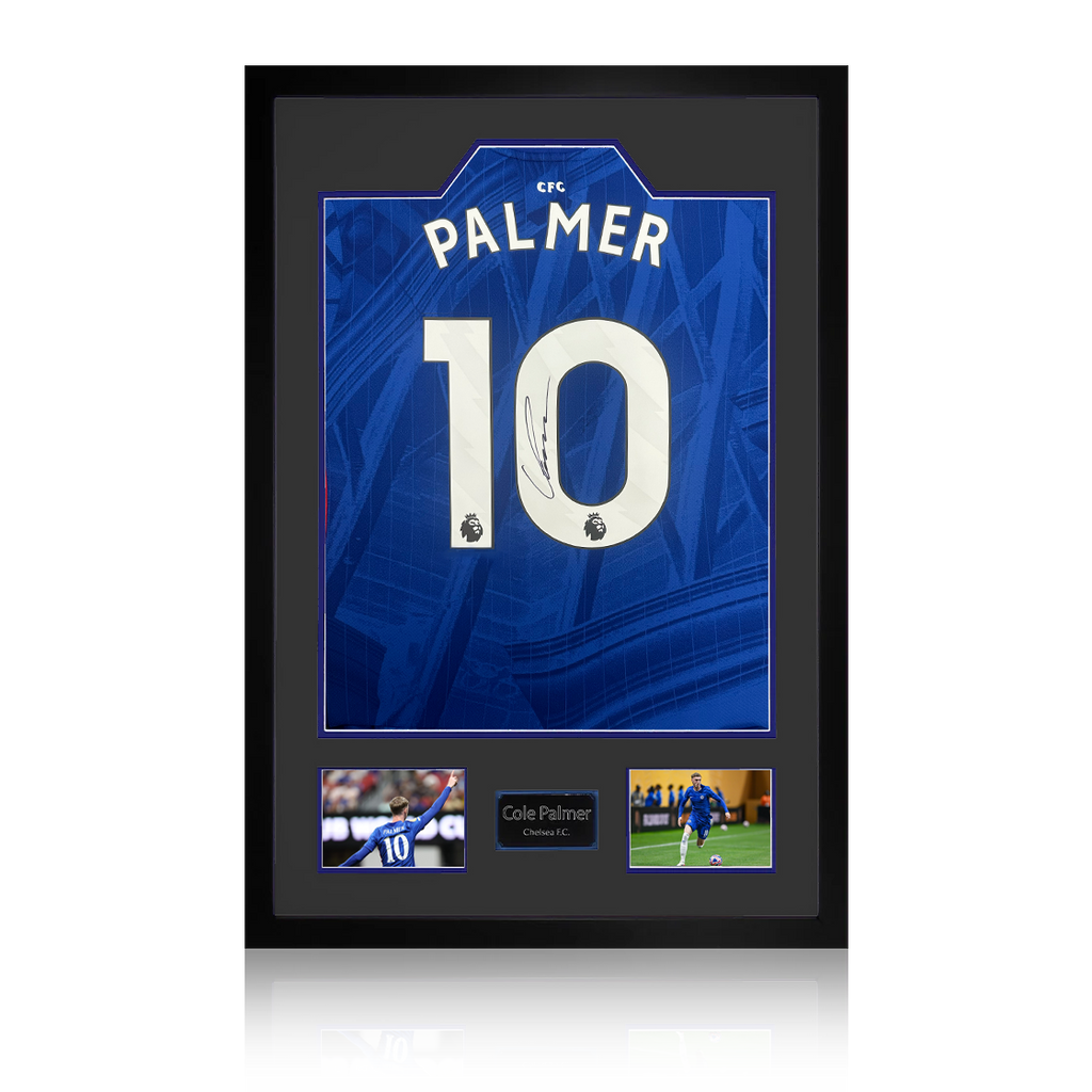 Beautifully presented Elite Frame with signed Chelsea 25/26 shirt by Cole Palmer. This item was signed at an exclusive Fan Cave signing with Cole on the 04/04/25. The frame measures approximately 820mm x 820mm. This item is acc...